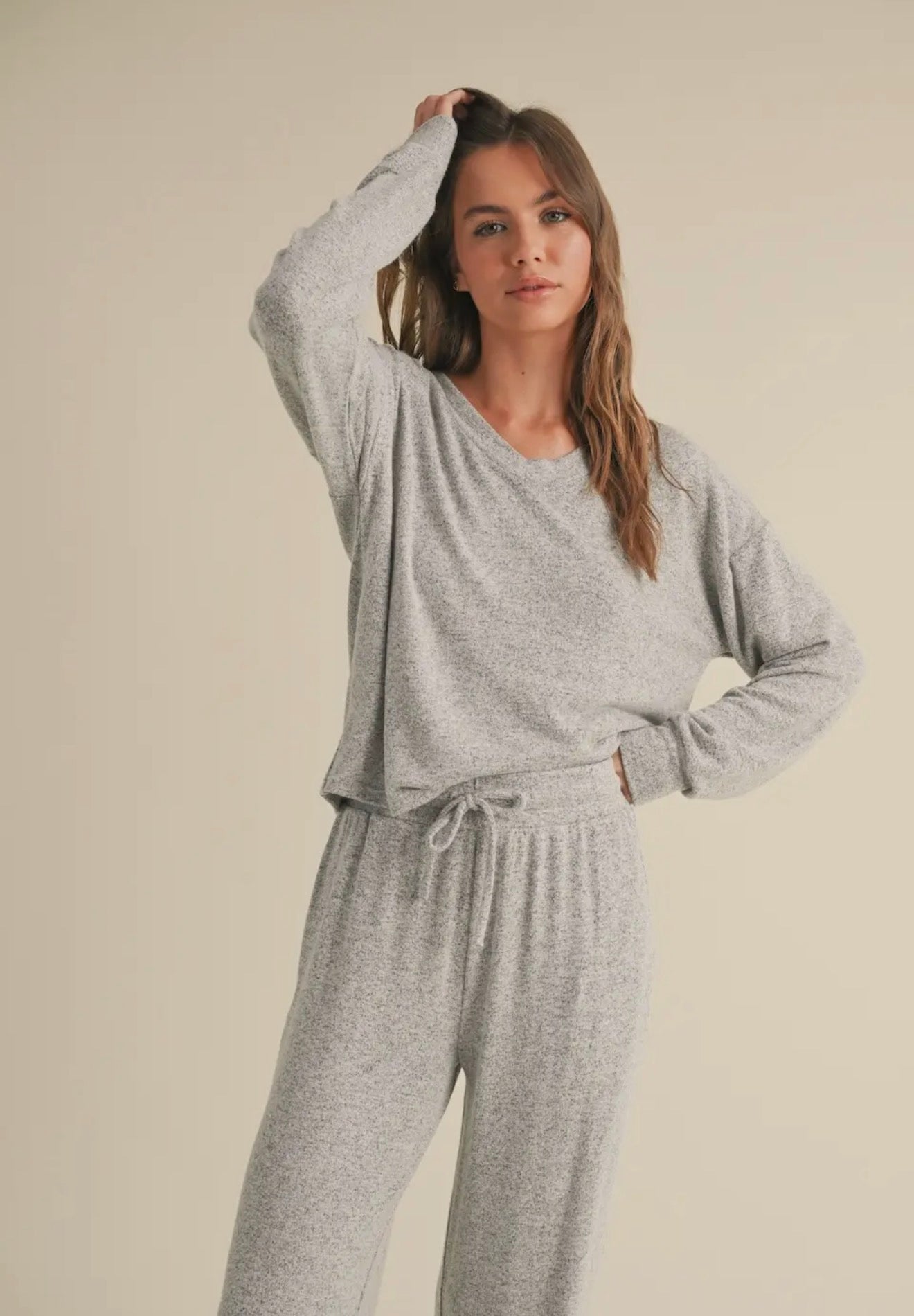 Effortlessly elevate your wardrobe with our Brushed Hacci V-Neck Top in grey. Crafted with a relaxed fit and flattering long sleeves, this top offers both comfort and style. Perfect for any occasion, this top is a must-have staple for your closet. Upgrade your look today.