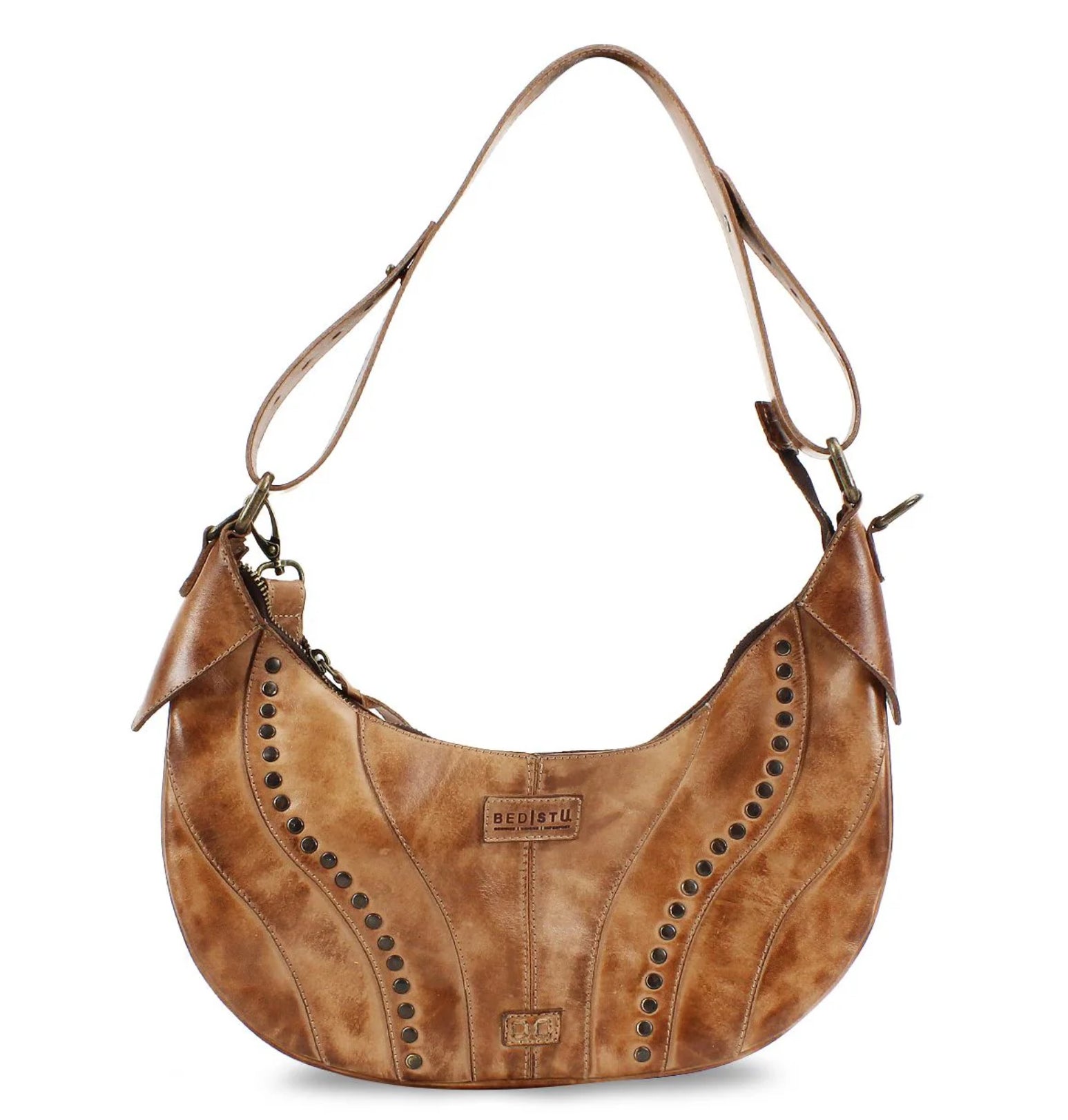 Megara is a stylish saddle bag that combines playful leather details with bold metal studs for a standout look. Designed as a roomy shoulder bag, it offers plenty of space for your essentials while adding a touch of flair to your outfit. Whether you're headed to work or out on the town, Megara's mix of fun details and practical design makes it the perfect everyday companion.