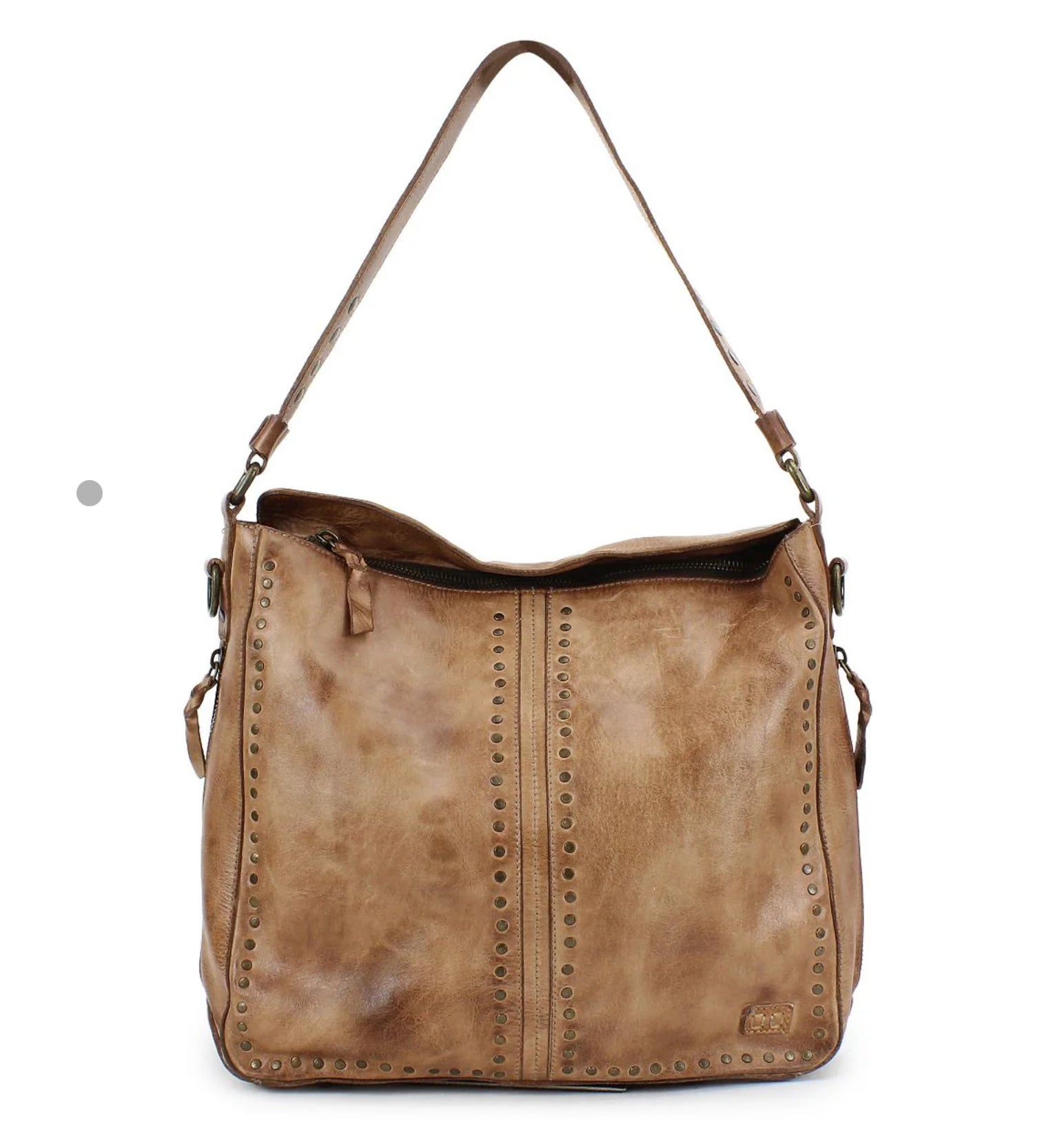 Packet LTC is a shoulder tote bag designed with both style and security in mind. Adorned with metal studs for a touch of edge, this bag features a fold-over flap that covers the zipper, ensuring your belongings stay safe. An outer zipped pocket adds extra convenience, making Packet LTC perfect for everyday use or as your go-to travel tote. Crafted from quality leather, it offers both durability and a bold look.